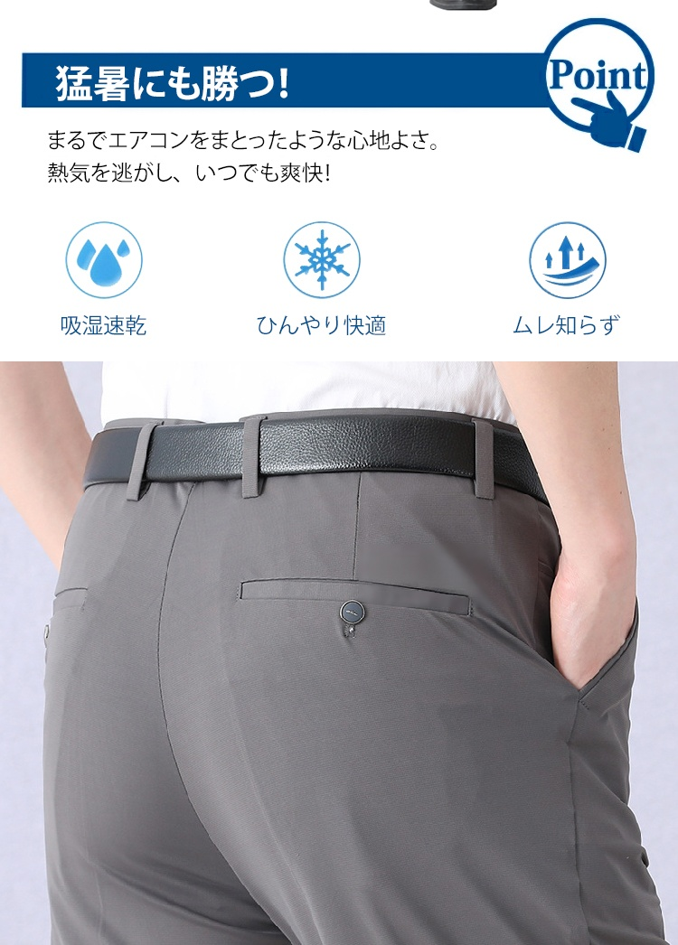 薄手 メンズスラックス 脚長効果 ストレッチ 通気速乾